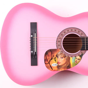 The guitar measures approximately 38" in length and has been autographed on a CD cover that has been repurposed as a pick-guard.Taylor Swift’s autograph is guaranteed authentic.
