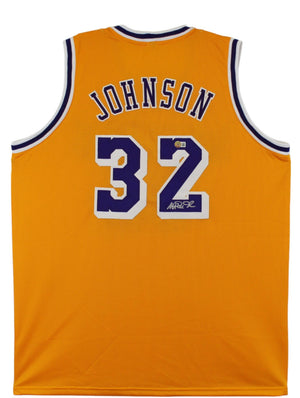 Magic Johnson autographed custom jersey with everything sewn on, size XL, Los Angeles Lakers, (HOF).