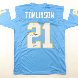 LaDainian Tomlinson (HOF) autographed custom jersey with everything sewn on, size XL.  Includes the inscription "HOF 17" as part of the signature.