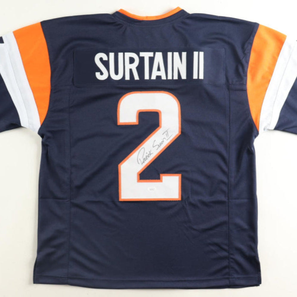 Patrick Surtain II autographed blue custom jersey. Everything is sewn on, size XL, Denver Broncos
