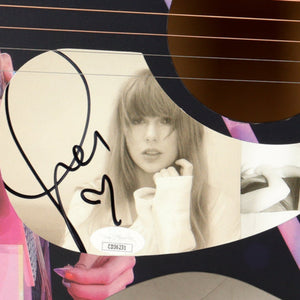 Taylor Swift autographed acoustic "Eras Tour" guitar. The autograph includes a "Heart" as displayed in the pictures. This is a beautiful display item!