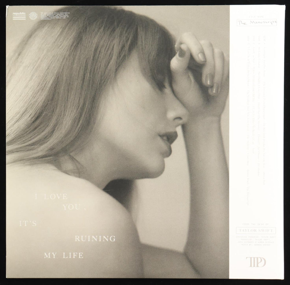 Taylor Swift long signature with a "heart" "The Tortured Poets Department" Album. Includes album cover and the vinyl record, insert and sleeve. Insert has been signed by Taylor Swift. Taylor Swift's signature is guaranteed authentic.